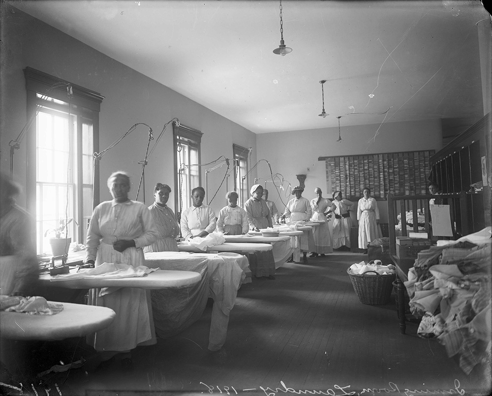 Black female patients at work in the laundry at St. Elizabeths Hospital, formerly the Government Hospital for the Insane, in Washington, D.C., in 1918. Source: National Archives