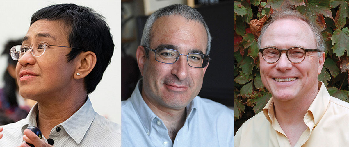 From left: Maria Ressa, Joshua Angrist and David Card. Photos by Denise Applewhite, Courtesy of the MIT Department of Economics, and by Jean Smith/UC Berkeley