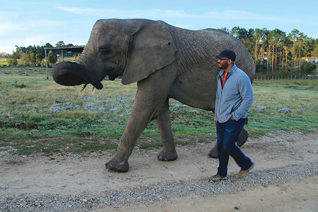 Shane Campbell-Staton studies the rapid evolution of animals such as elephants, urban lizards and wolves in response to human activity. PHOTO COURTESY OF KNYSNA ELEPHANT PARK