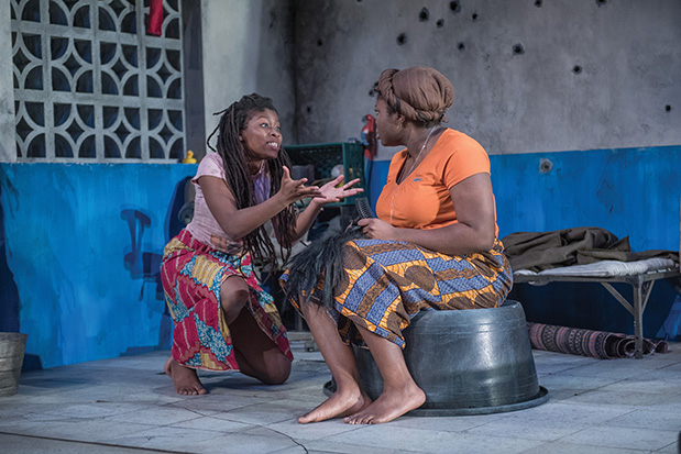 Ali first came to Princeton as the guest director of Eclipsed, a play that formed the basis of a senior thesis project by undergraduate Ugonna Nwabueze, Class of 2018 (left), shown performing with another student. PHOTO BY RON WYATT
