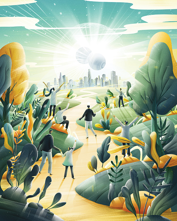 Fusion, a process in which two lighter atoms collide to release energy, could become the ultimate clean energy solution. ILLUSTRATION BY MANUEL ŠUMBERAC
