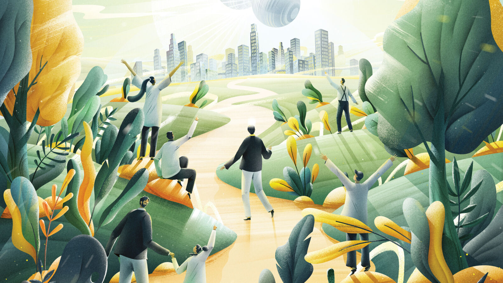 Fusion, a process in which two lighter atoms collide to release energy, could become the ultimate clean energy solution. ILLUSTRATION BY MANUEL ŠUMBERAC