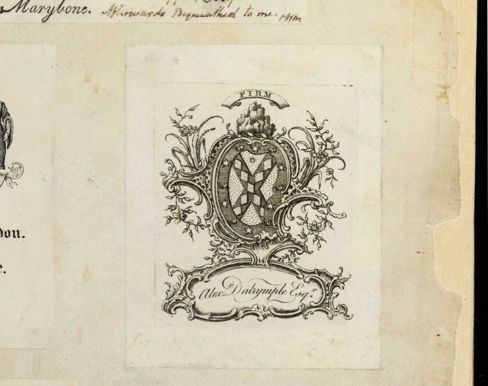 An elaborate bookplate, or label affixed to the inside cover of a book to show ownership, alerted modern-day scholars to rare manuscripts once in the possession of Alexander Dalrymple, who was governor general of the Philippines during the Battle of Manila in 1762. Dalrymple transported the contents of the plundered library of San Pablo to London, where they were later auctioned and dispersed to various library and museum collections. PHOTO BY CRISTINA JUAN
